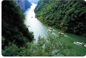 Shennong, or Holy Farmer (a legendary figure who invented the plough) Stream is in west Hubei Province. It is over 37.2 miles long and runs from north to south, emptying into Wu Gorge in the east. Floating on the stream is a popular shore excursion during a Yangtze River Cruise. Visitors float in a broad beamed boat, which takes them to Mianzhu Gorge, Yingwu or Parrot Gorge and Longchang Gorge. The waterway is narrow and luxurious vegetation covers both shores. Monkeys and wild goats can be seen and the atmosphere is rustic. Plank roads on the cliffs and hanging coffins are also visible.